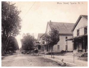 Established in 1895, Earl’s Hall was at 18 Main Street, Sparta, New Jersey. The second floor was the Hall with a full stage. It was here town meetings, school graduations, production plays, and live dance music took place into the early morning hours. The ground floor had 2 dwellings: one residential; the other housed many businesses over the years, first being the A&P (Atlantic and Pacific) grocer. Unlike today’s food supermarkets, this grocer was full service. Going to the market was as easy as giving the grocer behind the counter your list and have it returned neatly in a bag or box. Earl’s Hall was later converted into two apartments. If you had the urge to peek above the new apartment ceiling, you could see the old wainscoted ceiling and the upper half of the grand stage still intact.